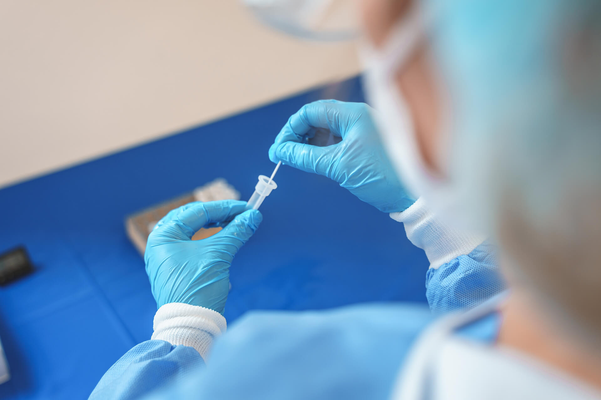 Der RT-PCR Schnelltest wird von medizinischem Fachpersonal durchgeführt. Es wird ein Nasen- und Rachenabstrich genommen.